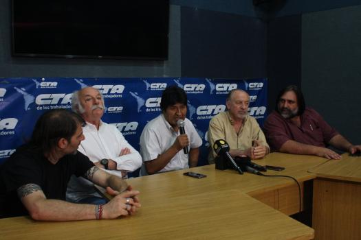 En un encuentro con integrantes de la Mesa Nacional de la CTA, con presencia del Secretario General Hugo Yasky; la Secretaria General de la CTERA, Sonia Alesso, y el Secretario General del SUTEBA, Roberto Baradel; la delegación boliviana, compuesta por Evo Morales, Gabriela Montaño y Diego Pary, expresó su profundo agradecimiento a la Central y a lxs Trabajadorxs por la solidaridad y por el apoyo brindado durante estos momentos en que la derecha, avalada por la OEA y Estados Unidos, produjo un golpe de Estado en Bolivia, lo que generó que el Presidente legítimo Morales debiera refugiarse fuera de su país ante las amenazas constantes contra su vida.