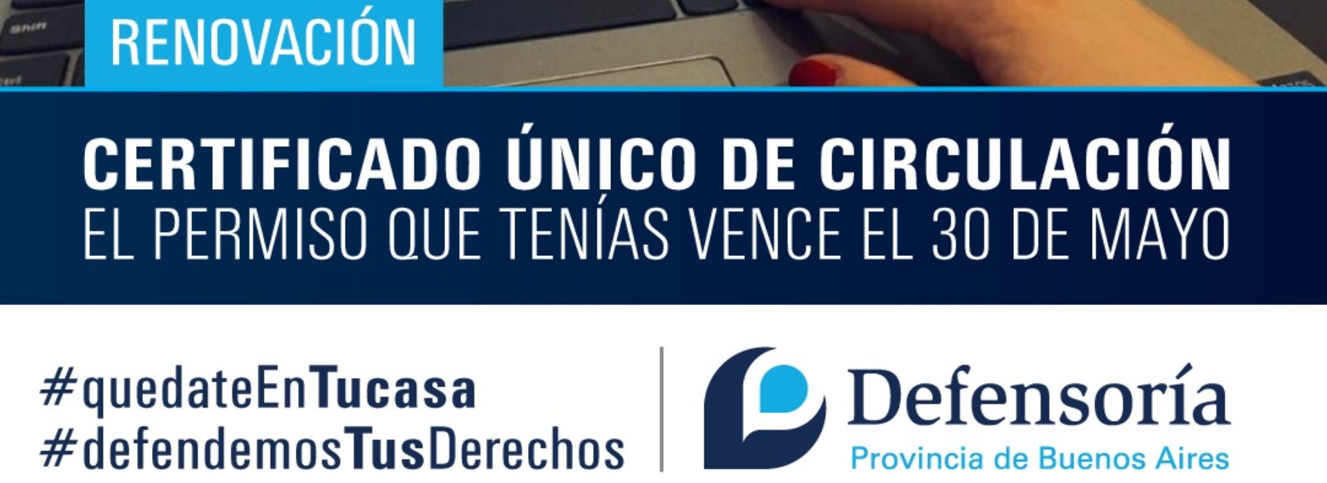 La Defensoría del Pueblo bonaerense te recuerda que tenés que renovar el Certificado Único de Circulación, el permiso que tenías vence el 30 de mayo.