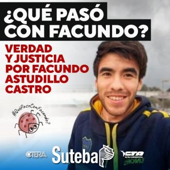 Desde el SUTEBA y la CTA de lxs Trabajadorxs acompañamos a la familia en su reclamo por Verdad y Justicia, nos sumamos a la campaña impulsada por HIJOS, exigiendo celeridad a la justicia, el inmediato esclarecimiento de lo ocurrido y el castigo a lxs responsables materiales e intelectuales.