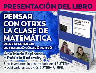 Desde la Secretaría de Cultura y Educación del SUTEBA, en el día de hoy y enmarcadxs en el Contexto de la Semana Virtual UNIPE Federal 2021, participamos de la presentación del libro: «Pensar con otros la clase de matemática. Una experiencia de trabajo colaborativo», de Ana María Espinoza y Patricia Sadovsky, una coedición del SUTEBA con UNIPE.