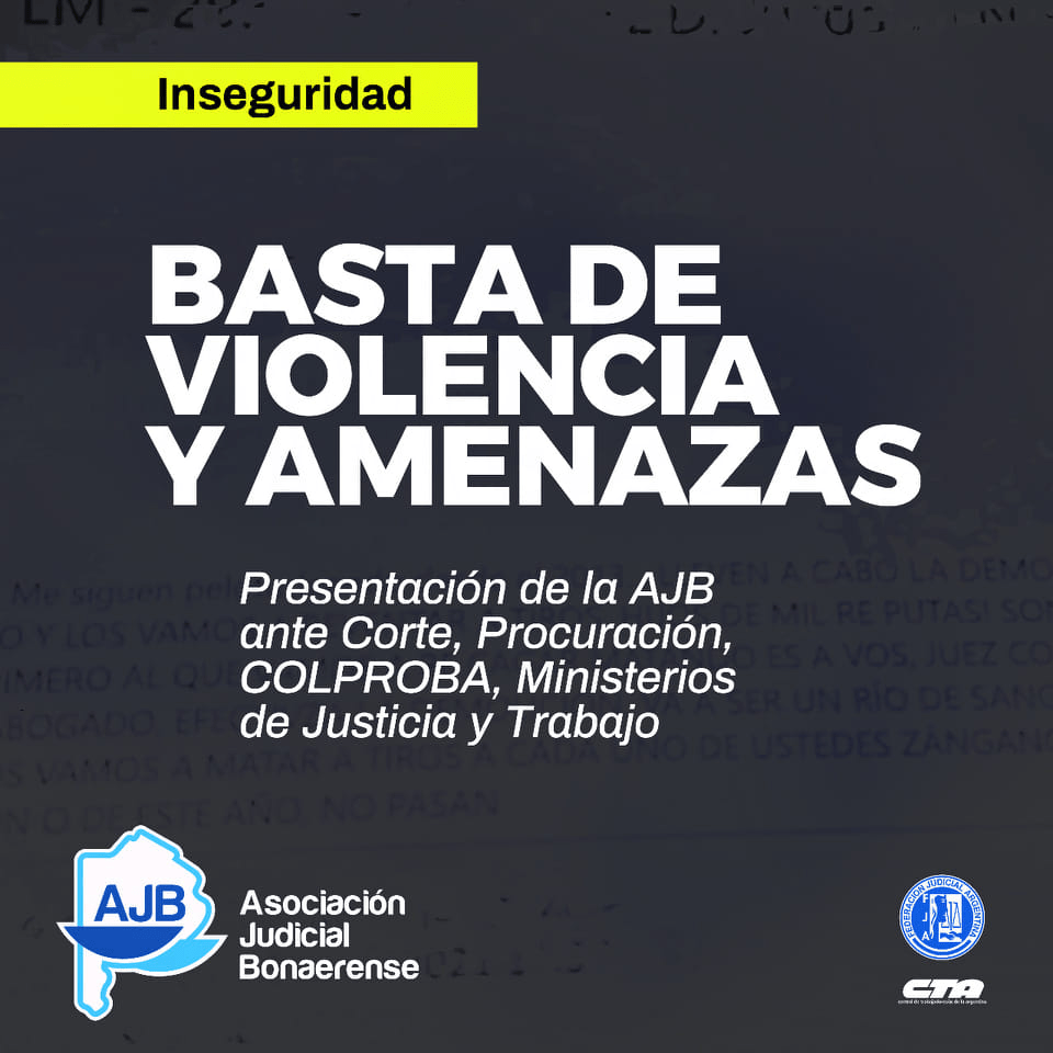Los párrafos textuales transcriptos son solo una muestra de las innumerables expresiones recibidas diariamente, por lo que desde la AJB de manera urgente se requerirá audiencia con la Suprema Corte, la Procuracion, el Colegio Público de Abogados provincial y los Ministerios de Justicia y de Trabajo a los efectos de dar urgente tratamiento a esta problemática que pone en riesgo la integridad física de cientos de trabajadores y trabajadoras judiciales de la provincia.