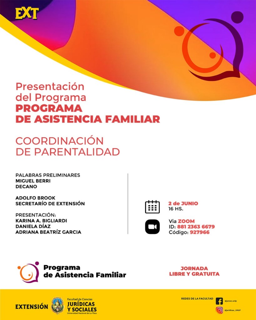 La Secretaría de Extensión Universitaria, invita a participar de la presentación del «Programa de Asistencia Familiar», el día jueves 2 de junio a las 16 hs. a través de la plataforma ZOOM.