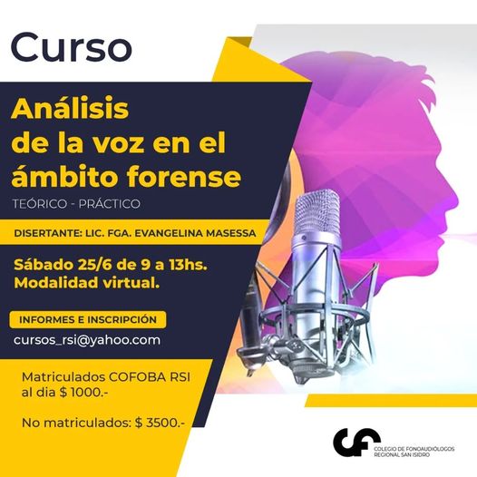 Desde la Regional La Plata los invitamos a inscribirse a este curso organizado por la Regional San Isidro, sobre Análisis de la Voz en el Ámbito Forense.