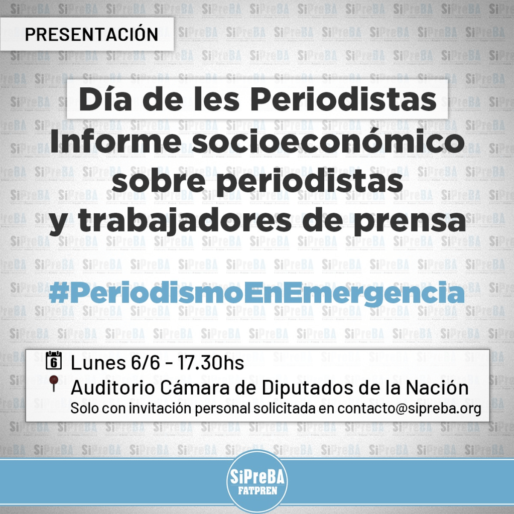 Ante el Día de les Periodistas, desde el SiPreBA presentamos formalmente en el Congreso de la Nación los datos de nuestra encuesta integral anual, que releva la situación socioeconómica del gremio de prensa.