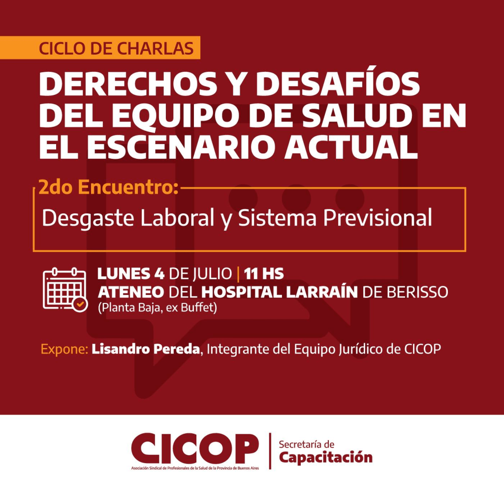 Agendate: Continúa el 𝗖𝗶𝗰𝗹𝗼 𝗱𝗲 𝗖𝗵𝗮𝗿𝗹𝗮𝘀 «Derechos y Desafíos del Equipo de Salud en el escenario actual».