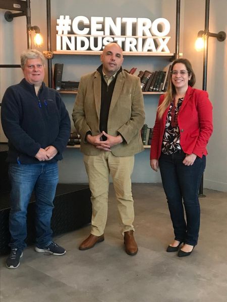 El presidente de la Asociación, Silvio Zurzolo junto a Laura Segura, Gerente de Servicios a Socios y del Centro de Industria X de la Unión Industrial Argentina estuvieron recorriendo las instalaciones y explicándole a Cesar Torres, subsecretario los procesos de innovación que allí desarrollan para impulsar a las pymes a la industria 4.0.