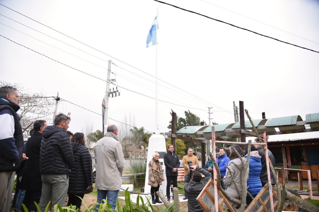 El mástil en cuestión contiene un reconocimiento a la memoria de María Rosa Lazari de Solsona, ilustre vecina de Gorina que, entre otras obras de bien, donó las tierras para la construcción de la Escuela N° 92, que cumple 75 años el próximo 12 de octubre.