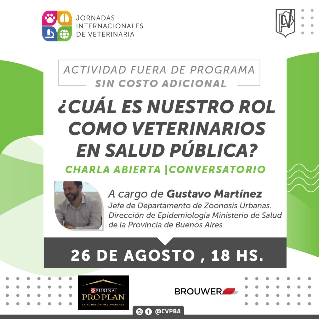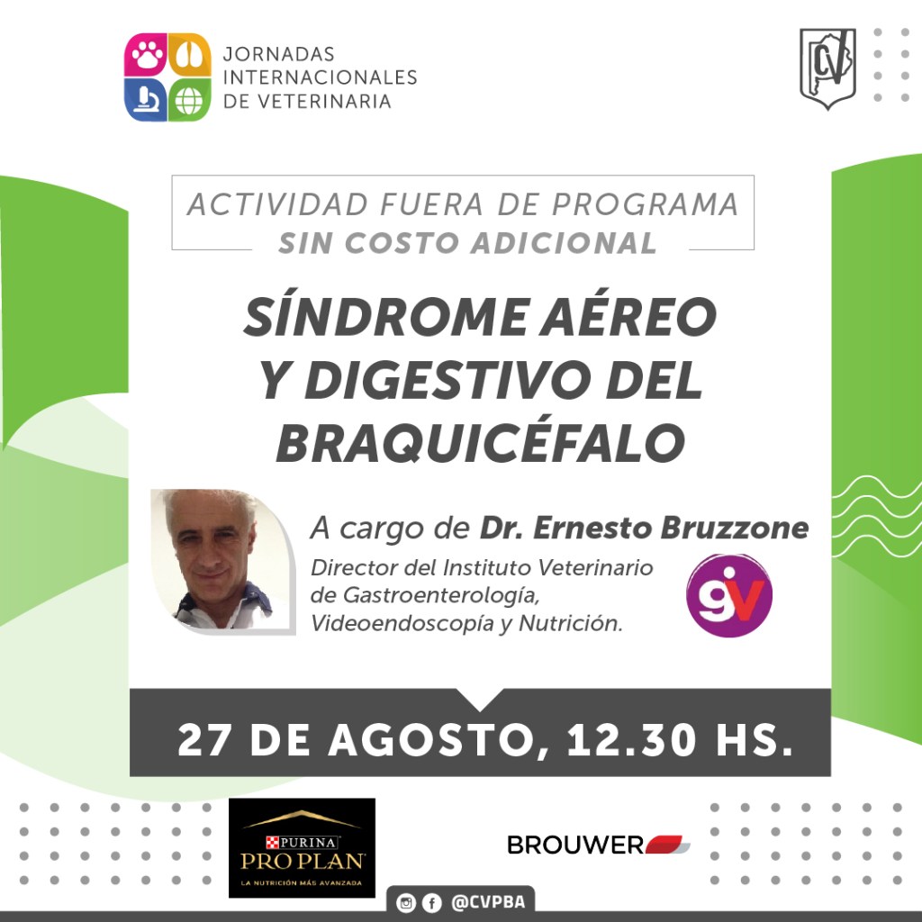 Especialmente invitados para estas propuestas contaremos con los MV Ernesto Bruzzone y Gustavo Martínez, y los temas a tratar serán el «Síndrome aéreo y digestivo del braquicéfalo» y el «Rol de los veterinarios en la salud pública», respectivamente.