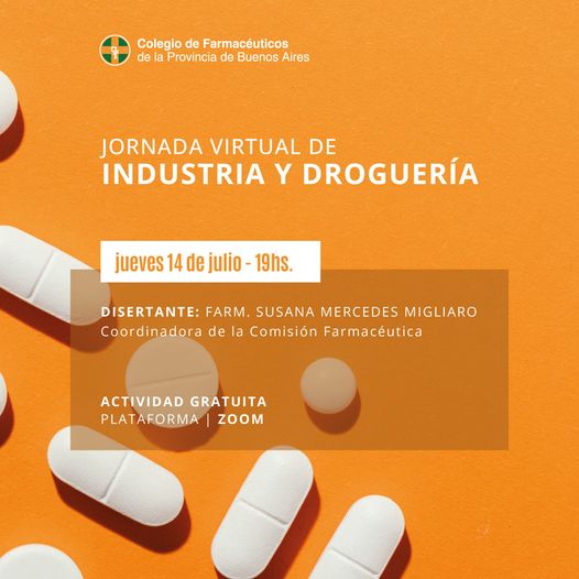 La Comisión de Farmacéuticos de Industria y Droguerías, los invita a participar el próximo jueves 14 de julio a las 19:00 horas de una jornada virtual por zoom en la que se abordarán los siguientes temas: