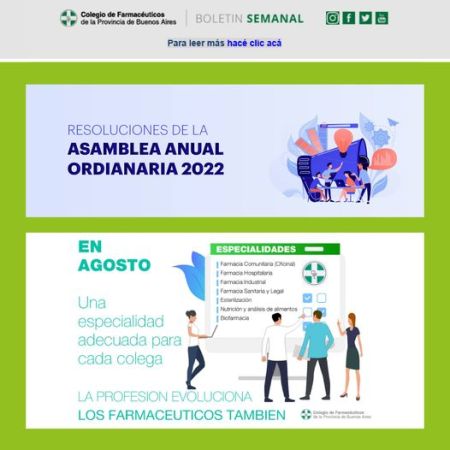 Está disponible el Boletín Semanal de Noticias del Colegio de Farmacéuticos de la provincia de Buenos Aires