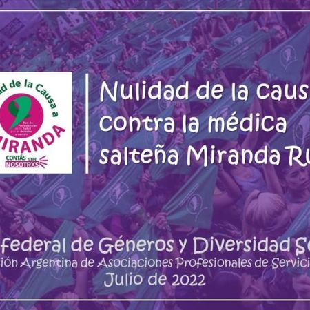 El Foro de Géneros y Diversidad Sexual de la FAAPSS adhirió al pedido de Nulidad de la Causa de Miranda Ruiz