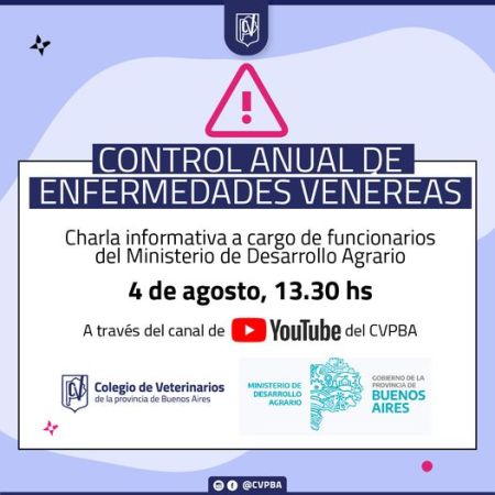 El Colegio de Veterinarios convoca a la charla abierta sobre «Control Anual de Enfermedades Venéreas»
