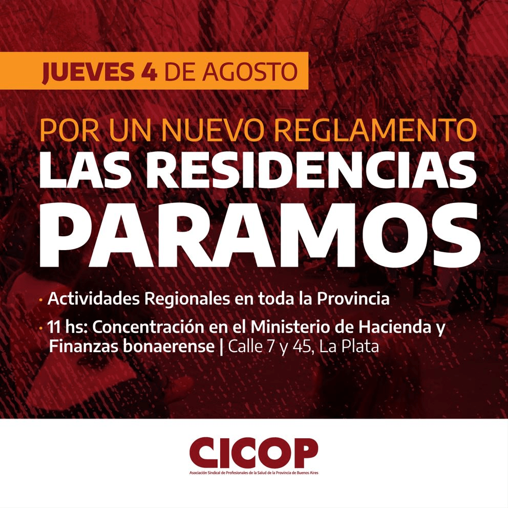 En ese marco, las asambleas de residentes realizadas durante las últimas semanas han decidido realizar un paro el jueves 4 de agosto con una nueva movilización en La Plata para visibilizar los reclamos y ejercer presión para que se concrete el Nuevo Reglamento antes de que ingrese la nueva cohorte de residentes.