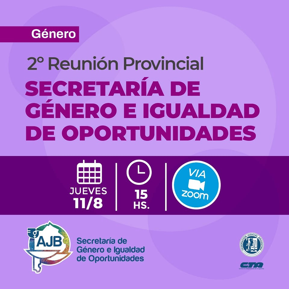 Mañana jueves la Secretaría de Género e Igualdad de Oportunidades, a cargo de Ruth Sahonero, realizará una nueva reunión del sector e invita a todas las referentes de las departamentales a sumarse. El encuentro será a las 15 hs. a través de la plataforma Zoom.