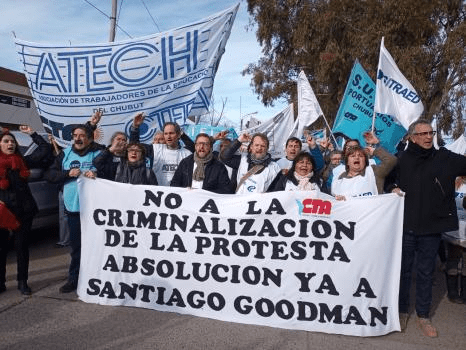 «No tengo dudas de que esta lucha va a continuar y va a ser en unidad, ese es el trabajo de militancia que hacemos lxs Trabajadorxs de la Educación. En esta región hay una fuerte disputa por la riqueza con grandes corporaciones, las provincias del sur tenían los mayores salarios y hoy están en situaciones difíciles, y por eso hace tiempo hay movilizaciones en Chubut. Y sí, hacemos paro cuando procesan a un dirigente, como nuestro compañero Santiago Goodman. La CTERA siempre está. Como pasó con Carlos Fuentealba, Santiago Maldonado, Rafael Nahuel, siempre estamos, está en nuestro ADN».