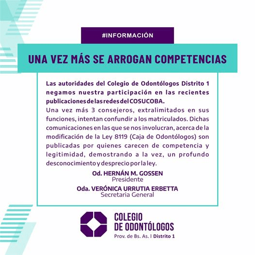 Las autoridades del Colegio de Odontólogos Distrito 1 negamos nuestra participación en las recientes publicaciones de las redes del COSUCOBA.