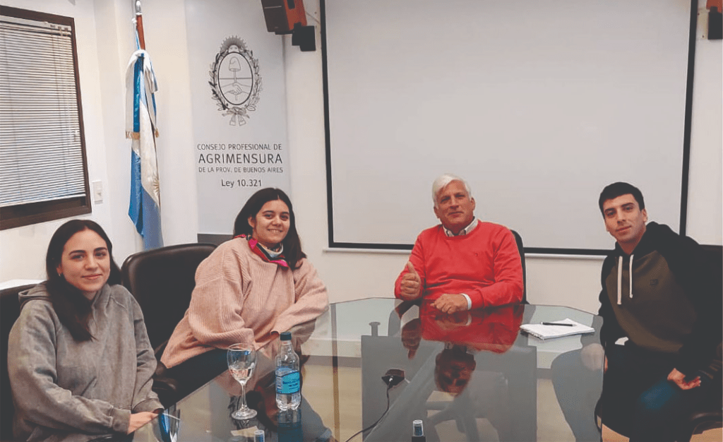 El Presidente del Consejo Profesional de Agrimensura de la Provincia de Buenos Aires, Agrim. Lucas Zanella Kohli recibió, en la sede del Consejo Superior, a estudiantes de la carrera de Agrimensura, integrantes del Ateneo Estudiantil José Hernández de la UNLP, Carolina Luques (Presidenta); Iñaki Sarragoicochea (Vicepresidente) y Marilina Diaz (Secretaria).