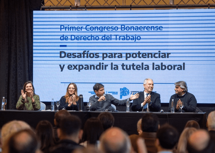 El gobernador de la provincia de Buenos Aires, Axel Kicillof, encabezó esta mañana en Mar del Plata la apertura del Primer Congreso Bonaerense de Derecho del Trabajo, junto a la ministra de Trabajo, Mara Ruiz Malec; su par de Justicia y Derechos Humanos, Julio Alak; la directora ejecutiva de la ANSES, Fernanda Raverta; y el secretario general de la Federación del Cuero (FATICA), Walter Correa. Las actividades se desarrollan en el Hotel Provincial, con el objetivo de generar un espacio de reflexión y formulación de estrategias jurídicas que contribuyan a la ampliación de la tutela laboral.