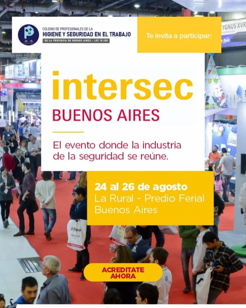Junto al El Consejo Federal de Profesionales Higiene y Seguridad, y el Colegio Profesional Higiene, Seguridad, Medio Ambiente de la República Argentina, estaremos presentes en Intersec Buenos Aires (Exposición Internacional de Seguridad, Protección contra Incendios, Seguridad Electrónica, Industrial y Protección Personal) del 24 al 26 de agosto.