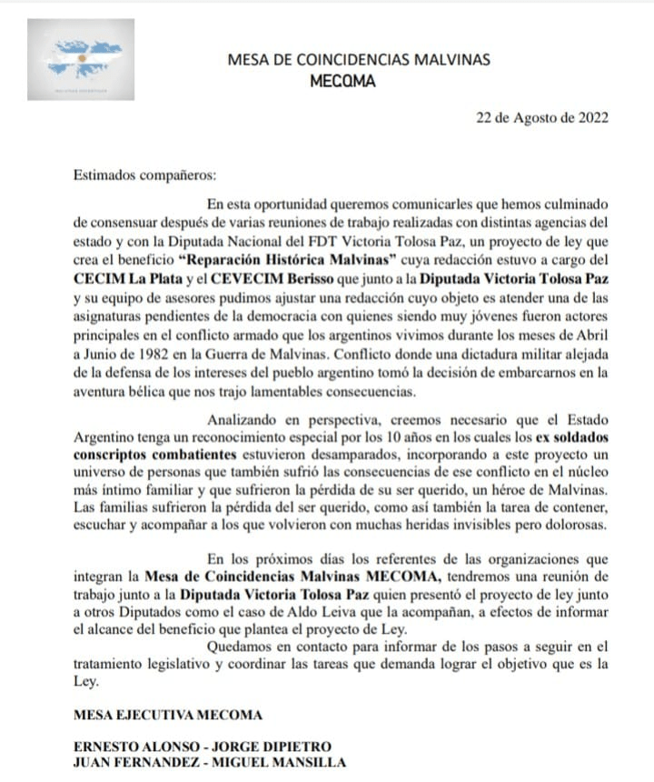 Se presentó el proyecto de ley para crear el beneficio «Reparación Histórica Malvinas»