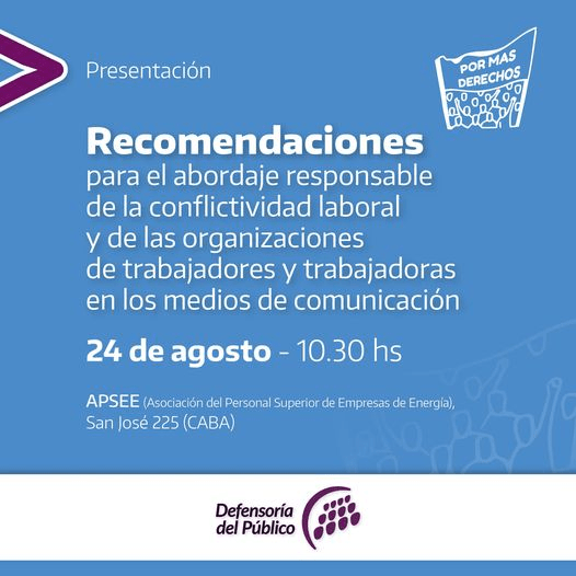 Presentación: «Recomendaciones para el abordaje responsable de la conflictividad laboral y de las organizaciones de trabajadores y trabajadoras en los medios de comunicación».