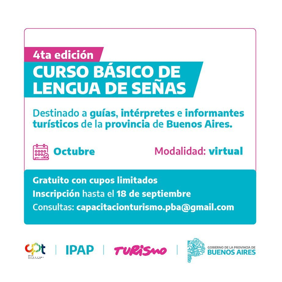 Convocatoria abierta para Curso de Lengua de Señas orientado a profesionales matriculados del Colegio de Profesionales en Turismo de la Provincia de Buenos Aires, en especial guías de turismo e informantes turísticos.
