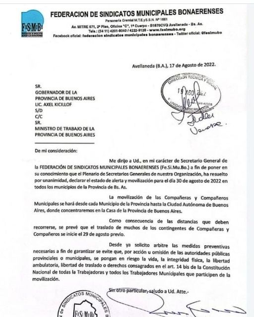 /Difusión SOEMLP – Federación de Sindicatos Municipales Bonaerenses. /