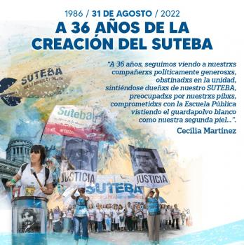 Entre el 30 de agosto y el 1º de septiembre de 1986 se constituyó el Sindicato Unificado de Trabajadores de la Educación (SUTEBA), concretando un largo y trabajoso proceso.