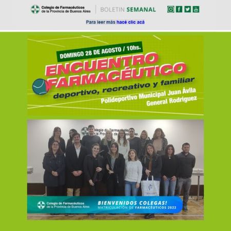 Está disponible el boletín semanal de noticias del Colegio de Farmacéuticos de la Provincia de Buenos Aires