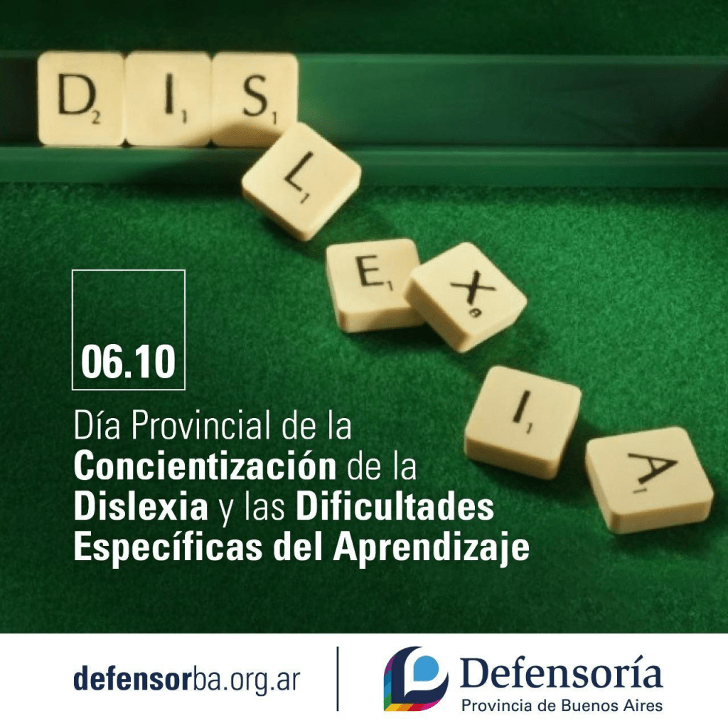 El pedido de la Defensoría forma parte de una serie de actividades informativas desplegadas por el organismo al celebrarse este mes el Día Provincial de la Concientización de la Dislexia y las Dificultades Específicas del Aprendizaje” (6 de octubre) y el Día Mundial de la Dislexia (8 de octubre).