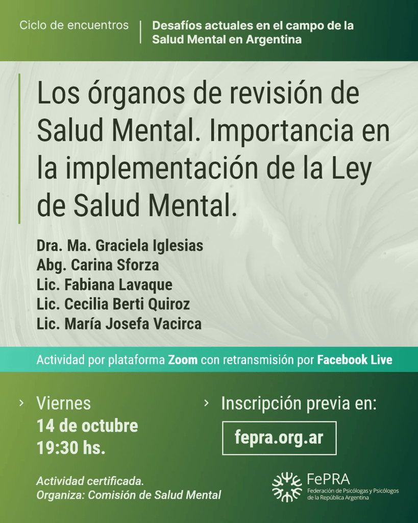 2do Encuentro: Los órganos de revisión de Salud Mental. Importancia en la implementación de la Ley de Salud Mental