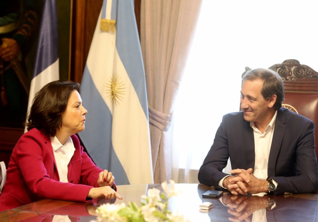 El intendente de La Plata, Julio Garro, mantuvo un encuentro con la embajadora de Francia en Argentina, Claudia Scherer-Effosse, durante el cual establecieron posibles líneas de acción entre ambas regiones, con el foco puesto en el cuidado del ambiente.