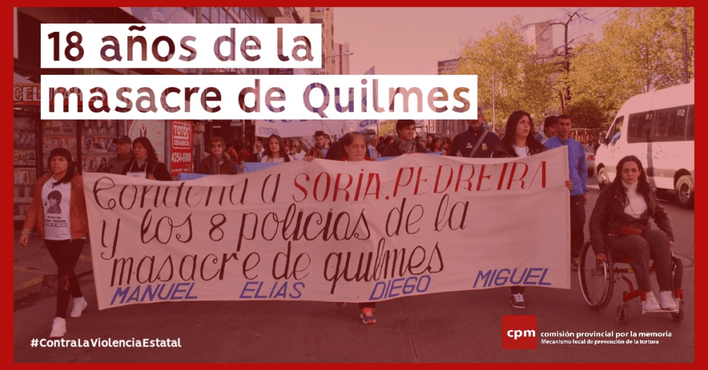 La noche del 20 de octubre de 2004, Diego Maldonado (16), Elías González (15), Manuel Figueroa (17) y Miguel Aranda (17) murieron en un incendio en la comisaría 1ª de Quilmes. Otros 13 sobrevivieron.