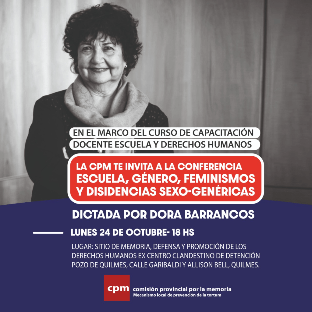 En el marco del curso de capacitación docente “Escuela y Derechos Humanos”, nuestra copresidenta Dora Barrancos dictará la conferencia Escuela, género, feminismos y disidencias sexo-genéricas.