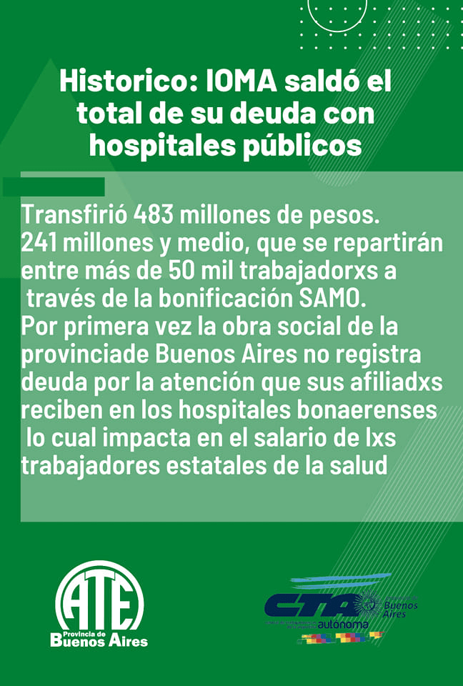 IOMA saldó el total de su deuda con los hospitales públicos lo cual impacta en el salario de los trabajadorxs de la salud