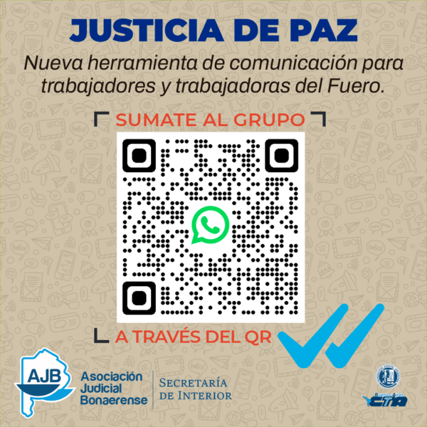 Durante la reunión se decidió crear un espacio de comunicación interna para el fuero. A continuación, se comparte el link para que las y los trabajadores de los Juzgados de Paz de la provincia que deseen se incorporen al grupo de WhatsApp y así estar conectados para abordar situaciones concernientes al sector y recibir información general del gremio: