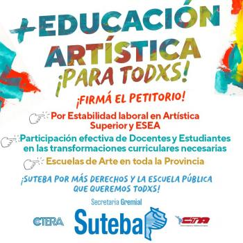 Desde el SUTEBA invitamos a todxs lxs Docentes afiliadxs del Nivel Superior de la Modalidad de Artística de la provincia de Buenos Aires a firmar este petitorio.