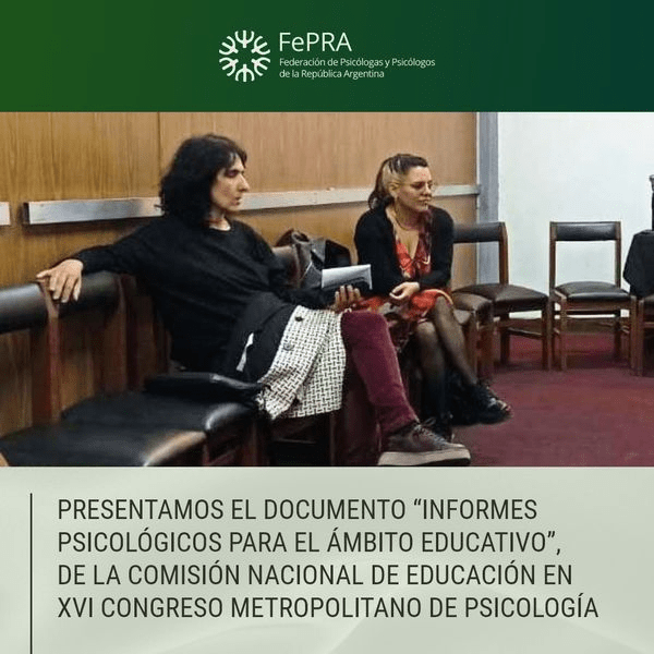 En el marco del XVI Congreso Metropolitano de Psicología, la Comisión Nacional de Educación de la FePRA representada por las Licenciadas Marina Lerner y Roció Vicente, junto a la Secretaría General Ps. Carolina Del Fresno, presentaron el Documento “Informes Psicológicos para el ámbito educativo”.