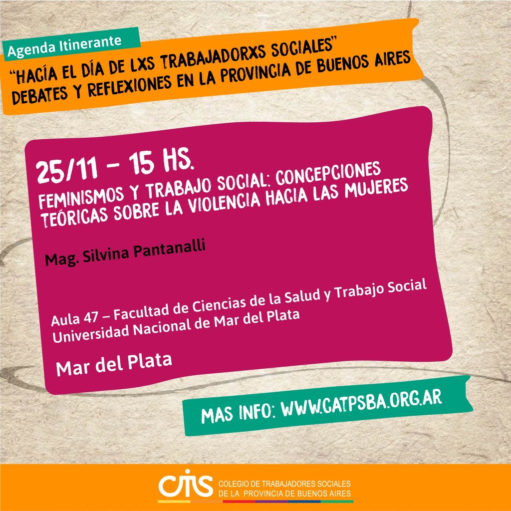 Esta semana nos estamos encontrando en Pergamino para intercambiar y debatir sobre condiciones de laborales y procesos de intervención en Trabajo Social y en Mar del Plata, en el marco del «Día Internacional de la Eliminación de la violencia contra las Mujeres», a problematizar las concepciones teóricas sobre la violencia hacia las mujeres.