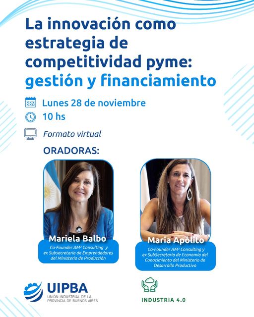 Se acerca el WEBINAR “La innovación como estrategia de competitividad pyme: gestión y financiamiento”, organizado por el Departamento de Industria 4.0 de UIPBA, a realizarse en formato virtual.