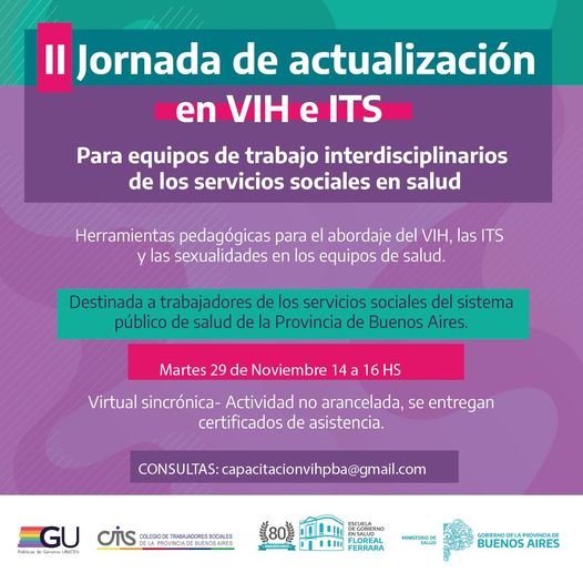 II Jornada de actualización en VIH e ITS para equipos de trabajo interdisciplinarios de los servicios sociales en salud: Herramientas pedagógicas para el abordaje del VIH, las ITS y las sexualidades en los equipos de salud.