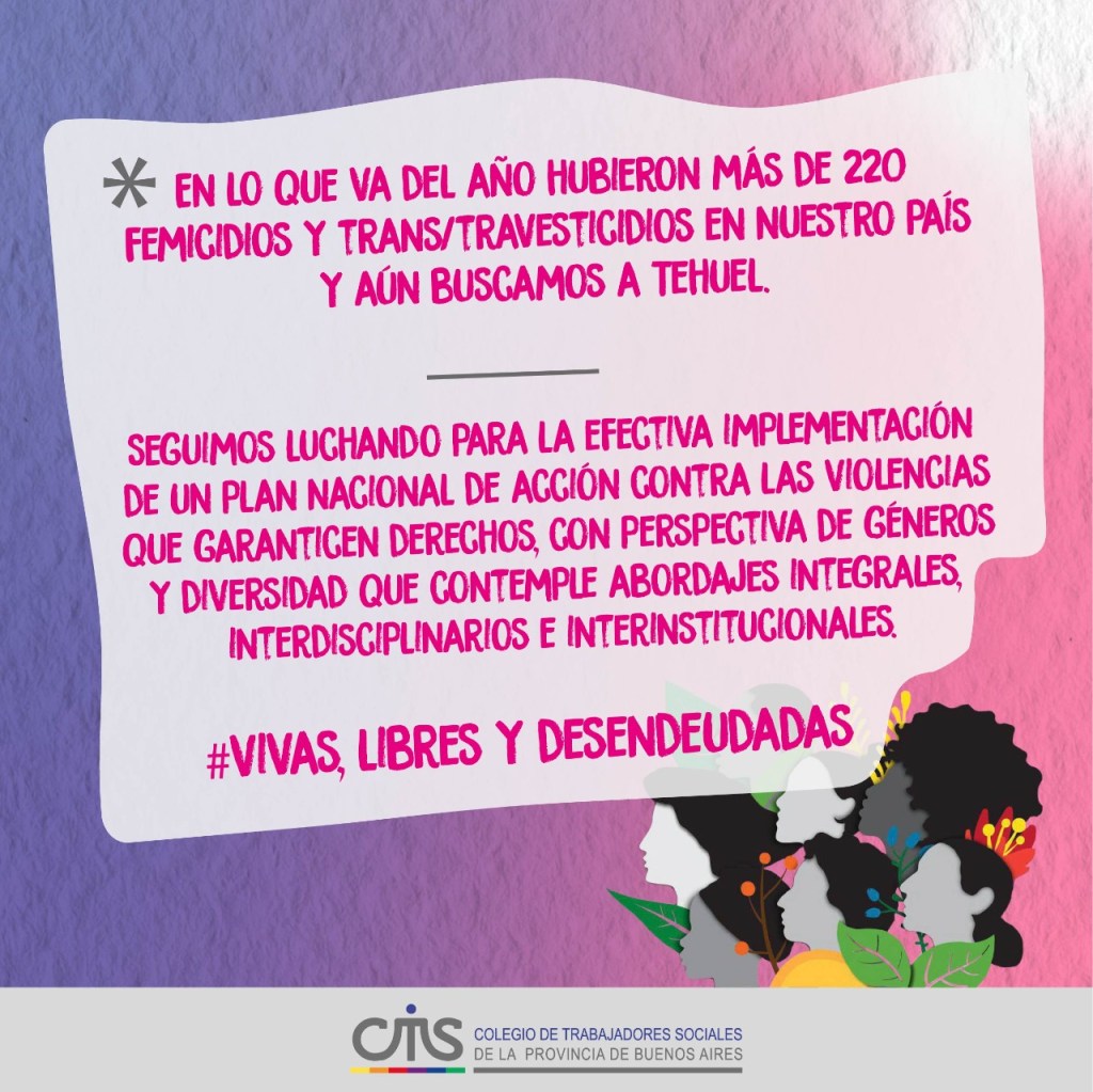 Seguimos luchando para la efectiva implementación de un plan nacional de acción contra las violencias que garanticen derechos, con perspectiva de géneros y diversidad que contemple abordajes integrales, interdisciplinarios e interinstitucionales.