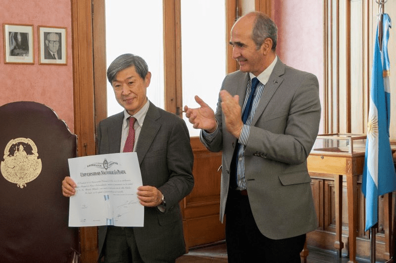La distinción fue entregada en el edificio del Rectorado por el presidente de la UNLP, Martín López Armengol. En el encuentro también estuvieron presente los integrantes de la comitiva nipona que se encuentran en nuestro país por estos días, la secretaria de JICA, Minako Sugawara, y Seiji Kato, del departamento de América Latina y el Caribe.