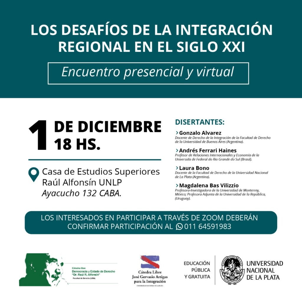 La actividad es organizada en forma conjunta por la Cátedra Libre José G. Artigas para la Integración de la Universidad Nacional de La Plata, la Facultad de Derecho de la casa de estudios platense, y la Cátedra Libre Democracia y Estado de Derecho Raúl Alfonsín, de la UBA. Es auspiciada por la Mesa de Extranjería de la Secretaría de Relaciones Institucionales de la UNLP.