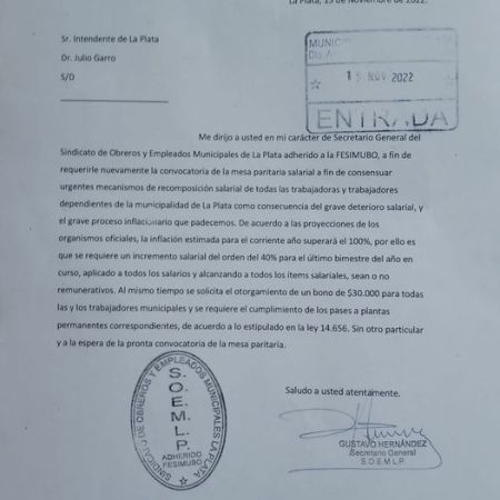 El SOEMLP solicitó la reapertura de paritarias con un 40% de incremento para el último bimestre año