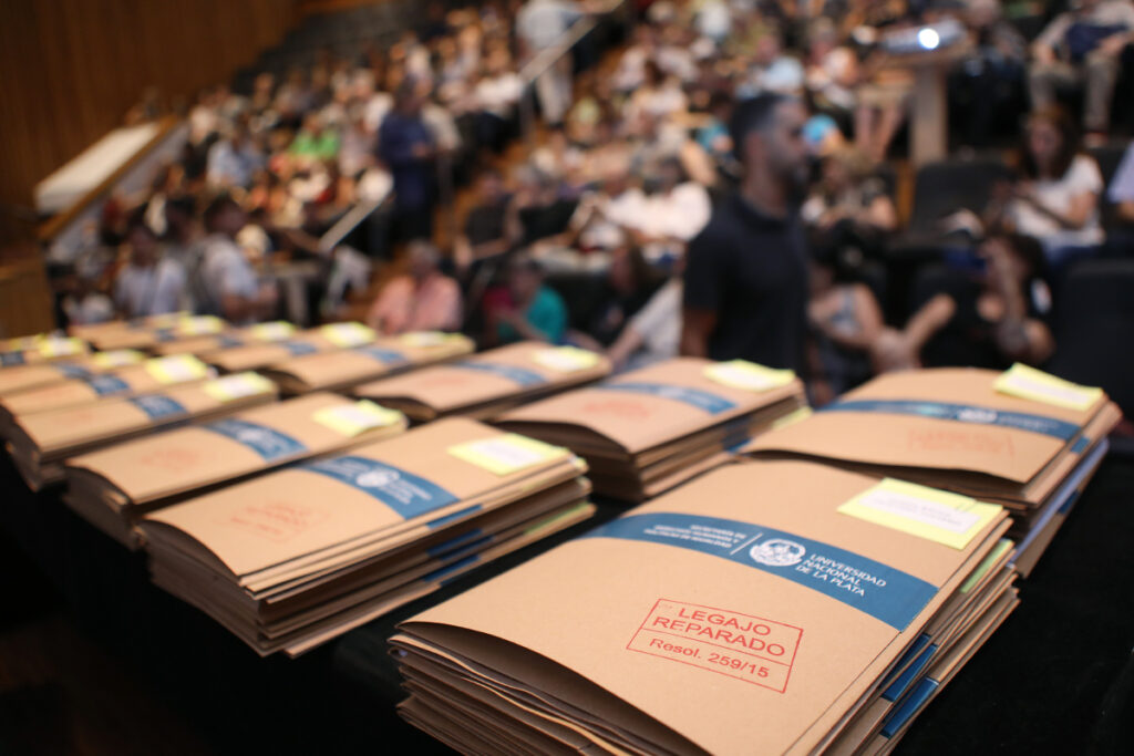 La Universidad Nacional de La Plata entregó 158 legajos reparados de estudiantes, docentes, Nodocentes, graduados y graduadas de la Facultad de Ciencias Médicas que fueron víctimas del terrorismo de Estado.