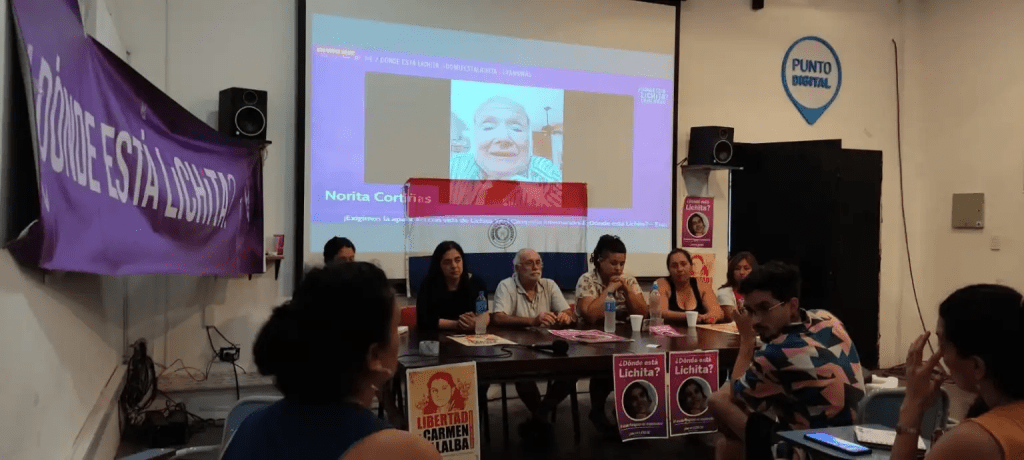 En Asunción, en el local de la Organización Nacional de Mujeres Rurales e Indígenas (CONAMURI), se llevó a cabo una conferencia de prensa en la que integrantes de la delegación allí presentes expresaron su mayor solidaridad con el pueblo paraguayo y reclamaron en un solo grito: ¿Dónde está Lichita? exigiendo una vez más su aparición con vida; libertad inmediata de Carmen Villalba, presa política y madre de Lichita, detenida ilegalmente desde hace un año y medio en la Cárcel del Buen Pastor, habiendo cumplido ya la totalidad de su condena el pasado 26 de Julio del 2021; justicia por las niñas asesinadas el 2 de septiembre y presentadas como guerrilleras por el estado paraguayo y, libertad a Laura Villalba, presa por maternar.