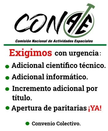 Asimismo, desde ATE CONAE destacan el importante esfuerzo que hacen les trabajadores del sector para sostener con “profesionalismo, experiencia y estabilidad” las demandas que requiere el desarrollo científico y tecnológico de nuestro país. “Por esto los y las trabajadoras exigimos que se tomen medidas urgentes y concretas para avanzar en una recomposición salarial que acerque nuestros ingresos a los del sector privado, teniendo en cuenta la gran especialización que requieren las tareas y actividades que se llevan adelante en nuestra Agencia Espacial”, añadieron.