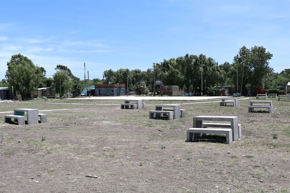 La Municipalidad recuperó y está poniendo en valor un espacio público para las familias del Barrio El Molino. En la Plaza Eva Perón se están haciendo las veredas y caminos internos, se colocaron mesas y bancos, se realizó una platea para la construcción de un playón deportivo y se plantaron árboles.