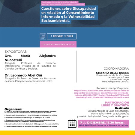 Se realizará la actividad «Cuestiones de Discapacidad en relación al Consentimiento Informado y la Vulnerabilidad Socioambiental»